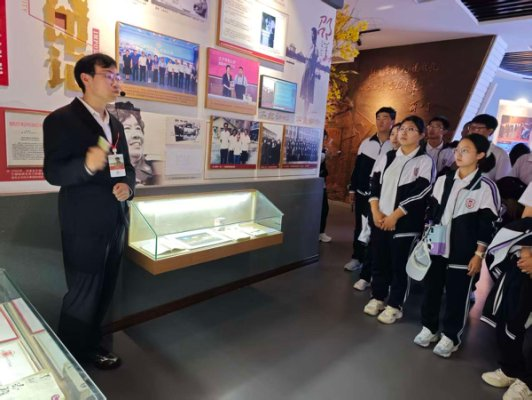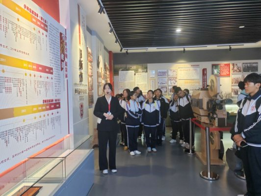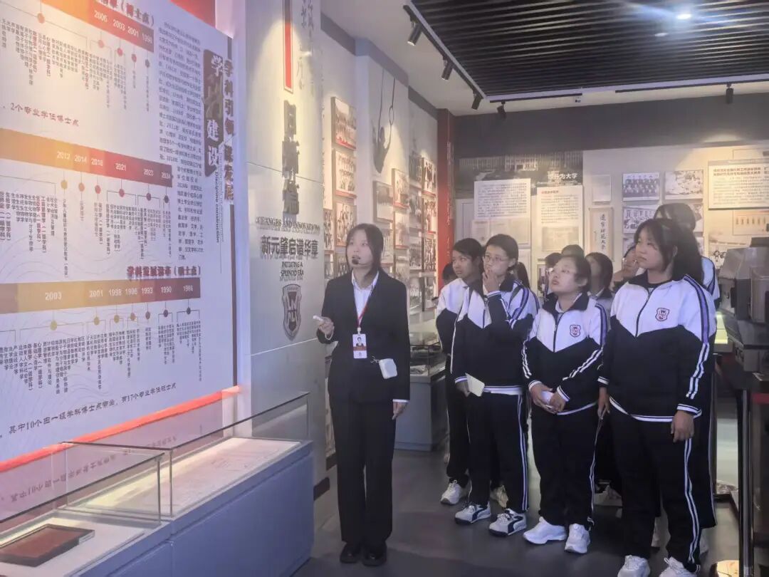 2025年9月18日,继续教育学院2025级本科生开展校史校情科普教育参观校史馆,校史文化宣传大使郑玥璇负责讲解。