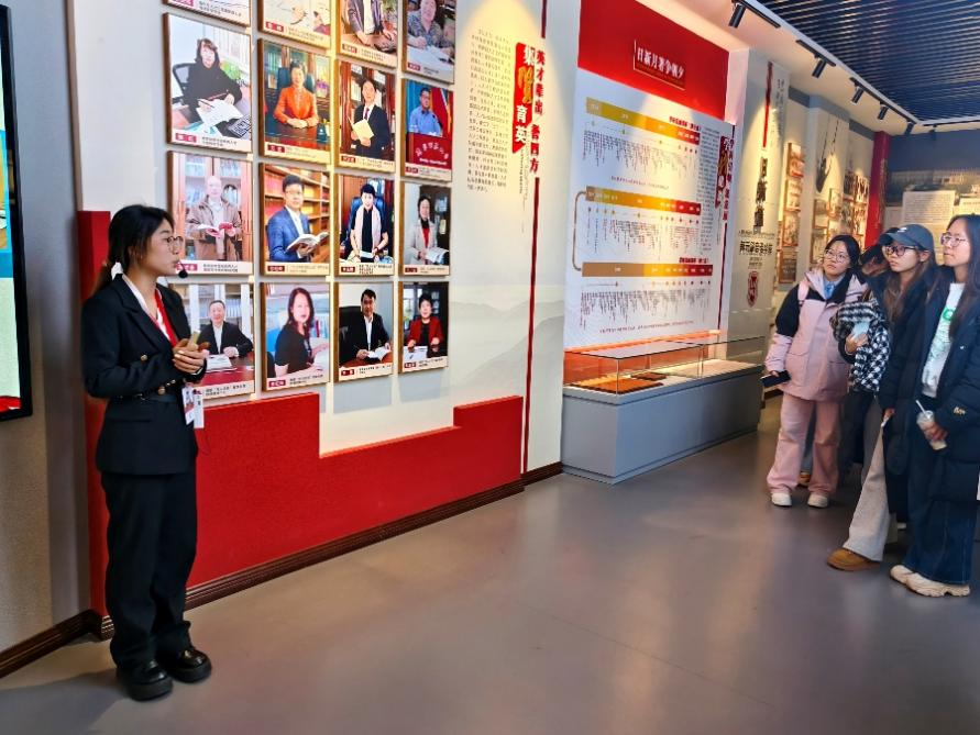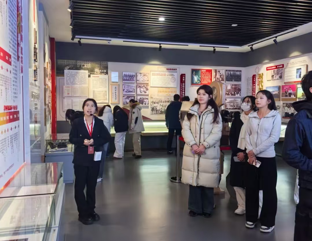 2025年12月2、5日,管理学院2025级本科生开展校史校情科普教育参观校史馆,校史文化宣传大使白洳冰、刘诗伽、吴依蔓负责讲解。